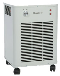 MiracleAir HEPA air cleaners for the home are designed to remove air odor, pollen, tobacco smoke, dust, vapors and many other irritants and allergens using the same industrial grade HEPA and sorbent media filters to protect workers from dangerous lead solder fumes and carcinogens. The MiracleAir air cleaner for home uses an independent HEPA air filter and sorbent media filter containing both potassium permanganate and virgin coconut shell for maximum efficiency over a wide range of gases. With an independent HEPA filter containing 82 sq. ft of media, and the optional sorbent canister containing 15 lbs. of sorbent media, the MiracleAir air purifier is designed to provide long filter life and maximize cost efficiency.